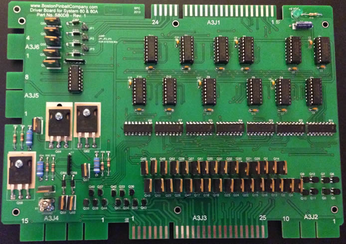 These boards have all NEW components! This board is also know as a Master Driver Board, Solenoid Driver Board, or Lamp Driver Board. Remember, that used board on Ebay or a tested or reconditioned board you may find at a pinball sales web site is going to be 30+ years old, it's been used for many thousands of hours. It's life is almost up, or is going to be up shortly after you install it in your machine. Don't waste $50-$100 on a used board when you can get a BRAND NEW one! Buy a spare, so when that old board of yours goes bad, just pop in a NEW one!
